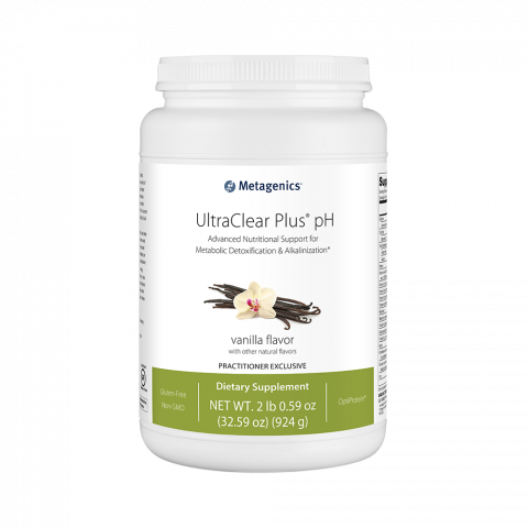 UltraClear Plus® pH is formulated to provide advanced, specialized support for balanced metabolic detoxification, including macro- and micronutrients to address liver function. Featuring potassium citrate and sesame oil, this formula helps to promote alkalinization and support Phase II liver detoxification function. UltraClear Plus pH also features glycine and magnesium sulfate to support Phase II detoxification activities, as well as green tea catechins, vitamin C, and beta-carotene to provide antioxidant protection. Provided in a base of 13 g OptiProtein® (10 g of rice protein plus 3 g of added amino acids) this formula provides well-rounded nutritional support.* Available in Vanilla & Pineapple Banana